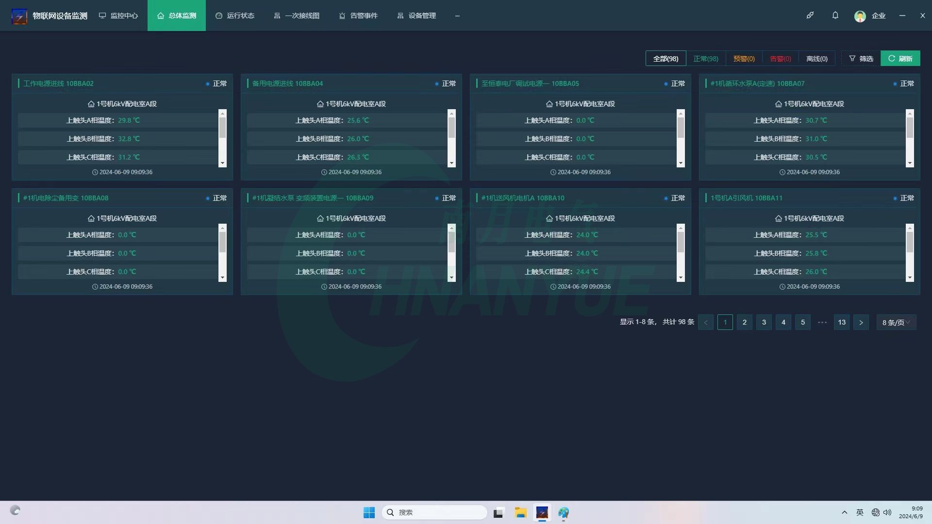 在監控係統上集中顯示被測各點的溫度值。
